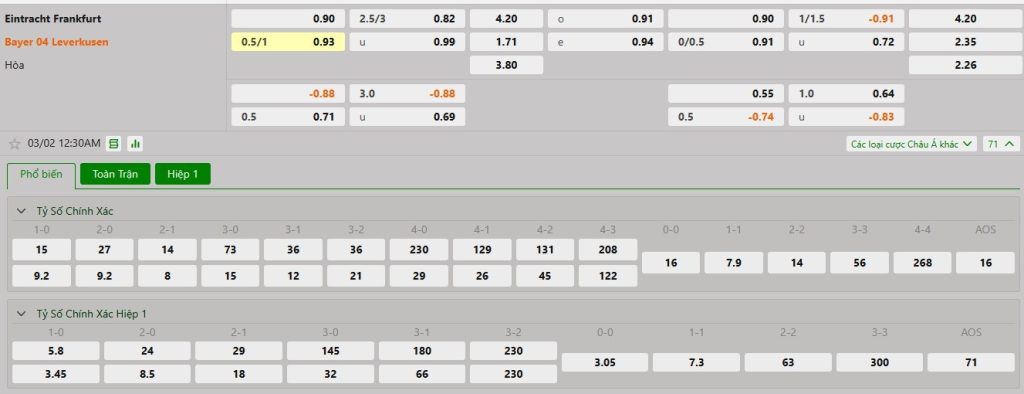 Soi kèo châu Á Eintracht Frankfurt vs Bayer Leverkusen