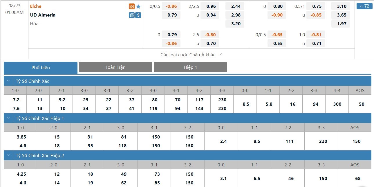 Almeria có quyền tự tin ở trận này khi mà đối thủ của họ chỉ là một Elche rất vừa sức. Elche lúc này sở hữu một đội hình không mấy chất lượng và phong độ của họ cũng đang là khá nghèo nàn. Ở vòng đấu đầu tiên, họ thua rất đậm Real Betis với tỷ số 0-3 và đó cũng là trận thua thứ 3 của họ chỉ trong 4 trận gần nhất. Trong khi đó Almeria đang cho thấy sự lì lợm. Ở vòng đấu đầu tiên, họ phải đón tiếp đối thủ rất mạnh Real Madrid nhưng họ vẫn thi đấu không tệ và chỉ thua sát nút với tỷ số 0-1. Trước một đối thủ dễ chịu hơn nhiều ở vòng đấu này, khả năng Almeria có điểm được đánh giá cao khi mà họ sẽ có thể đứng vững. Với tỷ lệ chấp ở mức 1/4 trái, cửa dưới Almeria sẽ là lựa chọn cho kèo đấu này.