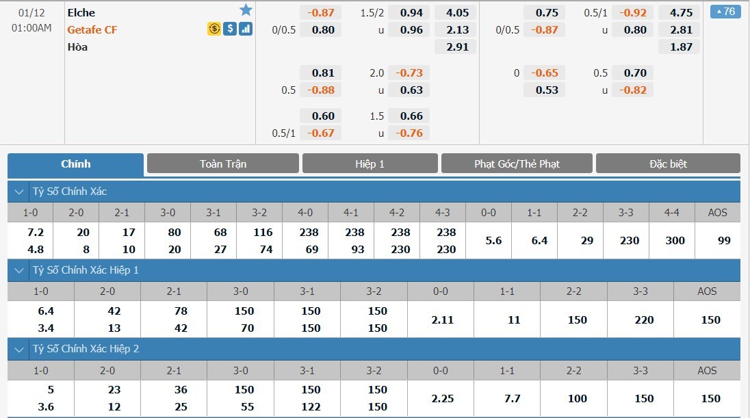 Soi kèo tài xỉu, kèo tỷ số Elche vs Getafe