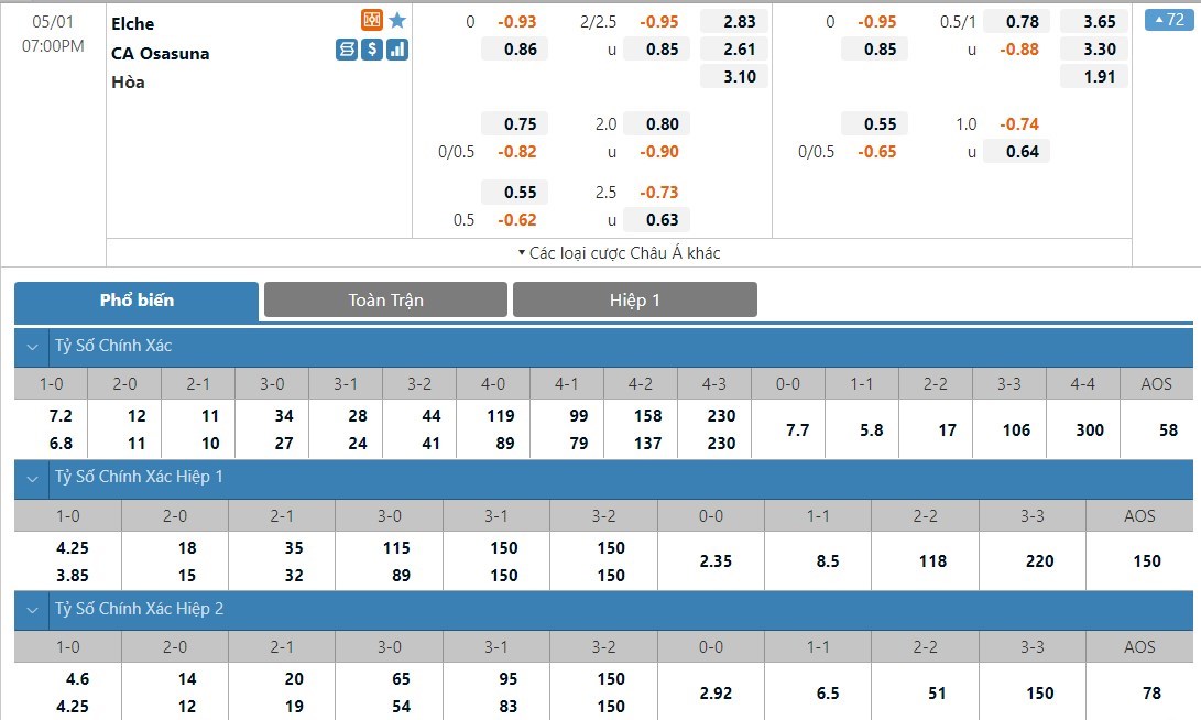 Soi kèo tài xỉu, kèo tỷ số Elche vs Osasuna