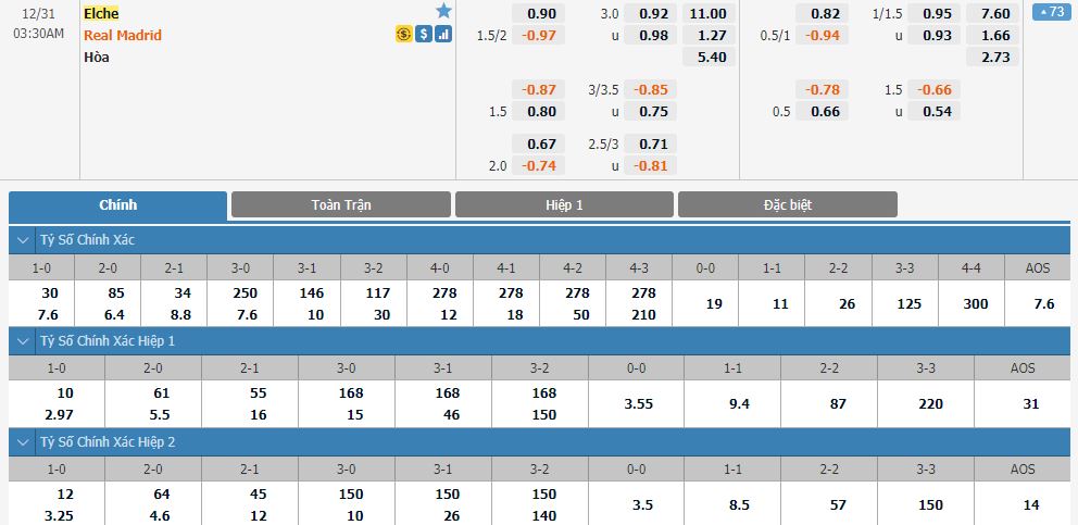 Soi kèo châu Á Elche vs Real Madrid