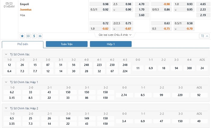 Soi kèo tổng quát Empoli vs Juventus