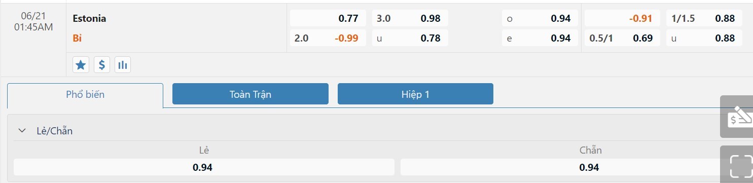 Soi kèo tài xỉu, kèo tỷ số Estonia vs Bỉ