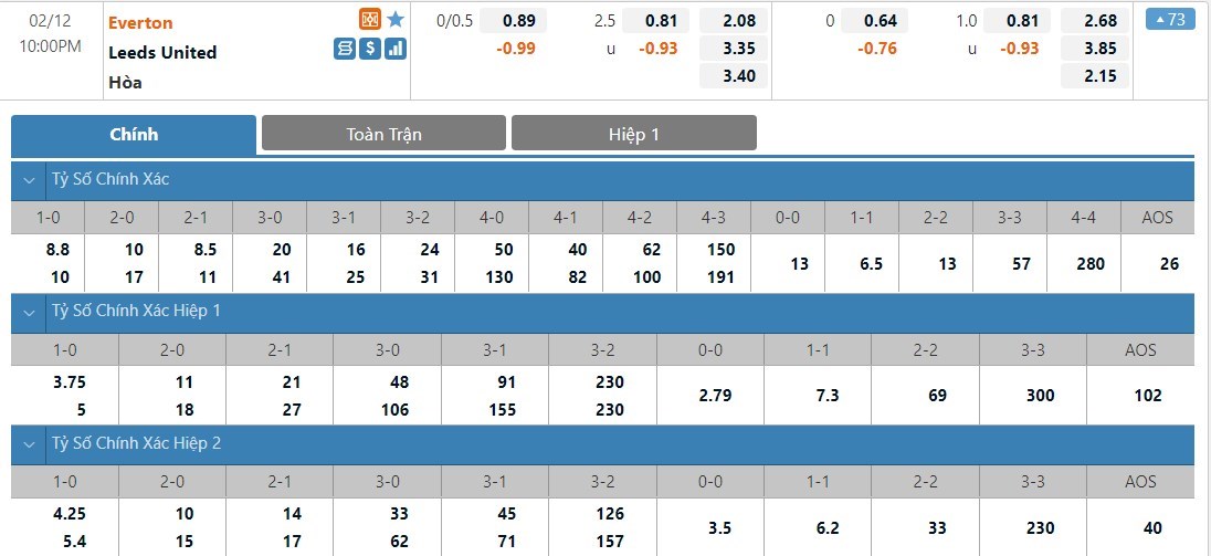4/5 trận gần nhất của Everton và 6/8 trận gần nhất của Leeds kết thúc với ít nhất 3 bàn thắng được ghi. Cả 2 đội bóng này đều đang thi đấu cởi mở và những trận đấu của họ thường xuất hiện khá nhiều bàn thắng. Với tỷ lệ tài xỉu ở mức 2 1/2 trái, ô cược tài sẽ là lựa chọn không tệ cho kèo đấu này.