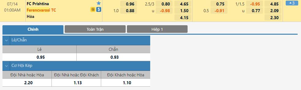 Soi kèo tổng quát FC Prishtina vs Ferencvaros