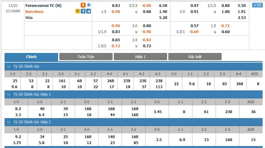 Soi kèo châu Á Ferencvaros vs Barcelona