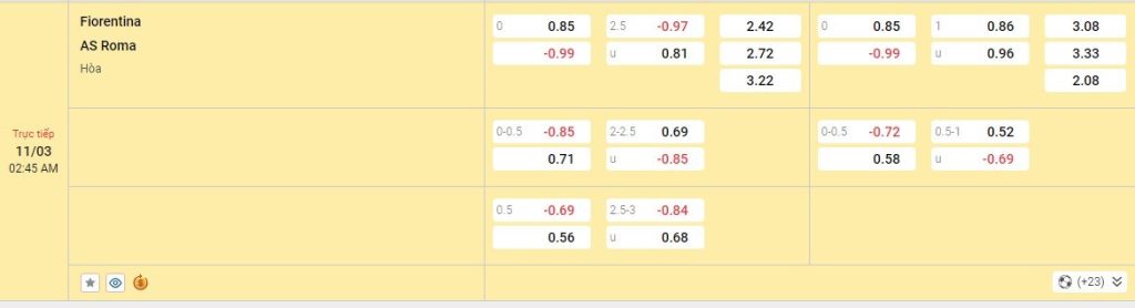 Soi kèo tổng quát Fiorentina vs AS Roma