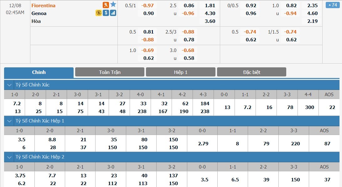 Soi kèo châu Á Fiorentina vs Genoa