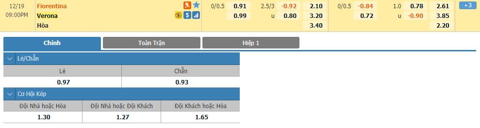 Soi kèo tổng quát Fiorentina vs Hellas Verona