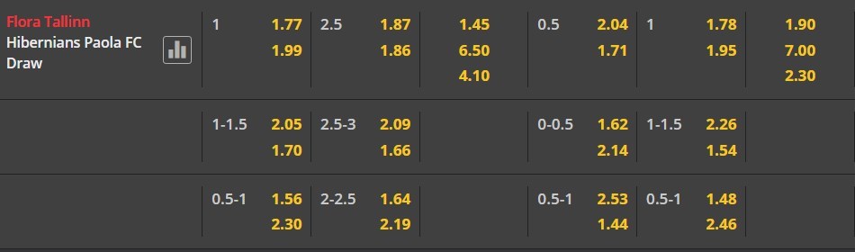 Dự đoán kèo tỷ số hiệp 1: Flora Tallinn 2-0 Hibernians