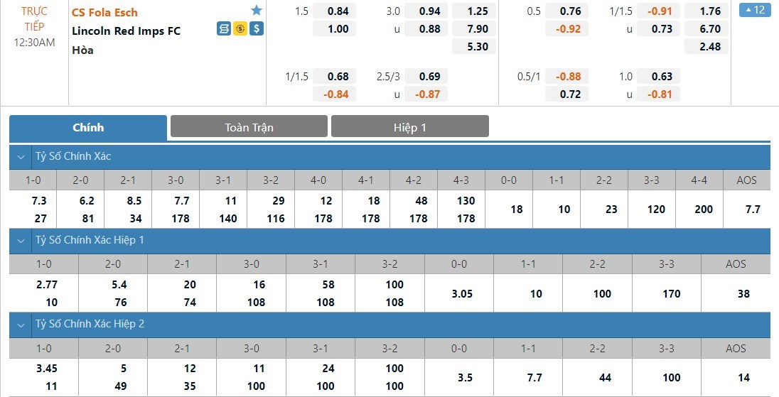 Kèo châu Á toàn trận: Fola Esch -1 1/2 (FT)
