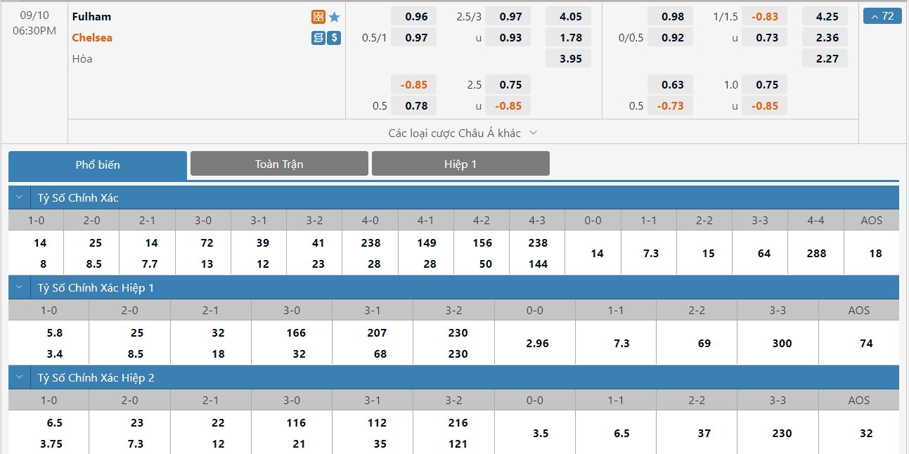 Soi kèo châu Á Fulham vs Chelsea