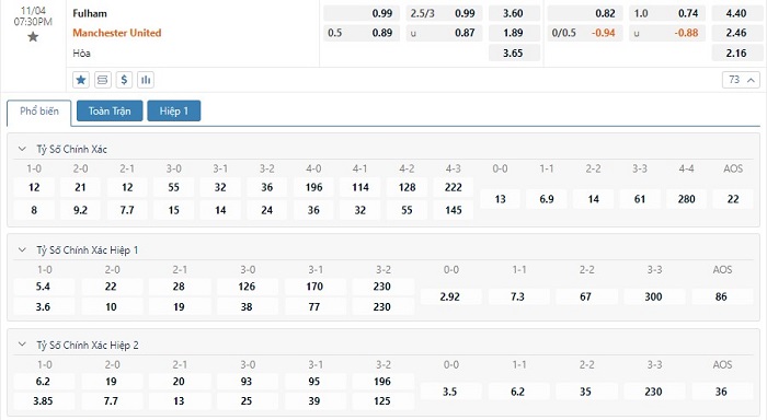 Soi kèo tổng quát Fulham vs Manchester United