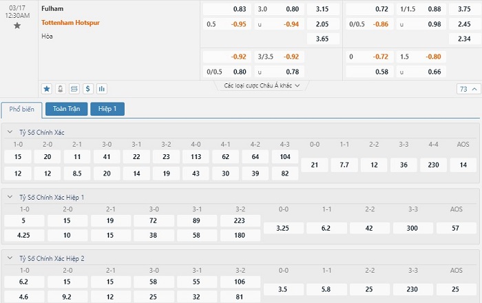 Trong 5 trận đấu gần nhất trên mọi đấu trường, Fulham đã mang về cho mình 10 pha lập công cùng với 6 lần phải vào lưới nhặt bóng. Bên kia chiến tuyến, Tottenham đã sở hữu 12 bàn thắng, còn lại là việc hàng thủ đã phải nhận 6 bàn thua. Chỉ có 1/5 trận gần nhất giữa hai đội khép lại với tổng số bàn thắng từ 3 trở lên và khả năng trận đấu tới có nhiều bàn thắng là khá cao. Các nhà đầu tư nên tin tưởng vào khả năng nổ Tài ở cuộc đối đầu này với tỷ lệ tài xỉu là 3 trái.