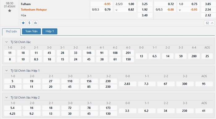 Soi kèo tài xỉu, kèo tỷ số Fulham vs Tottenham