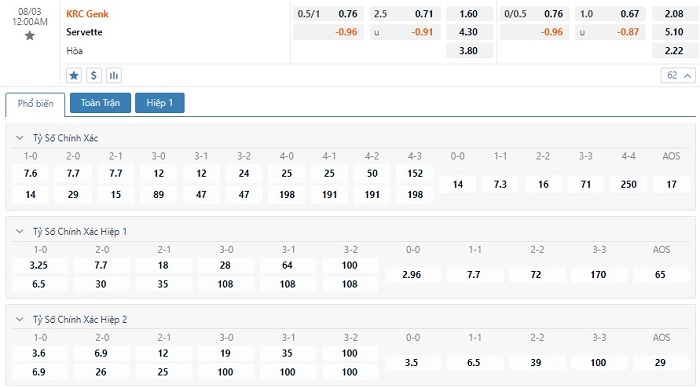 Trong 5 trận đấu gần nhất của mình, Genk đã có 4 trận đấu mang về được cho mình ít nhất là 1 bàn thắng trong hiệp đấu đầu tiên. Còn với Servette, đội bóng này đã có 4 lần làm được điều này trong 45 phút đầu tiên. Với tỷ lệ kèo hiệp 1 là Genk chấp -1/4 trái thì các nhà đầu tư nên tin tưởng vào đội khách ở trong hiệp đấu đầu tiên này.
