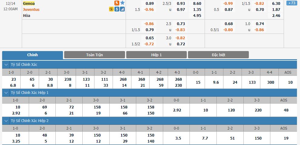 Soi kèo tài xỉu, kèo tỷ số Genoa vs Juventus
