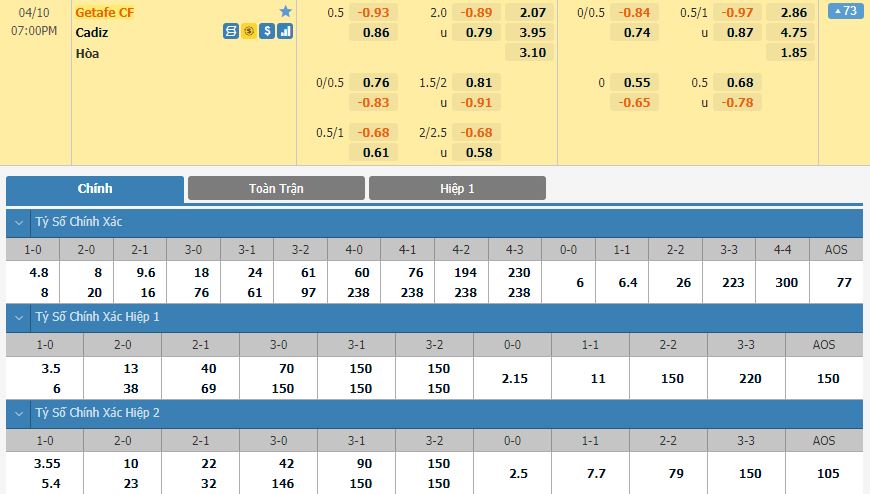 Soi kèo tài xỉu, kèo tỷ số Getafe vs Cadiz