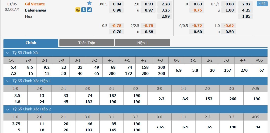 Phong độ của Gil Vicente đang có dấu hiệu khởi sắc hơn. Ở liên tiếp 2 trận gần đây, Gil Vicente đều giành chiến thắng. Tính rộng hơn trong 5 trận gần nhất, Gil Vicente cũng thắng tới 3 trận và chỉ 1 lần để thua. Đây sẽ là cơ hội để Gil Vicente có chiến thắng thứ 3 liên tiếp khi mà đối thủ của họ chỉ là một Belenenses không được đánh giá cao. Ở cả 2 vòng đấu gần đây, Belenenses cũng đều phải nhận thất bại và phong độ của đội khách đang là không tốt. Với tỷ lệ chấp nhẹ 1/4 trái, cửa trên Gil Vicente là lựa chọn có thể tin tưởng ở kèo đấu này.
