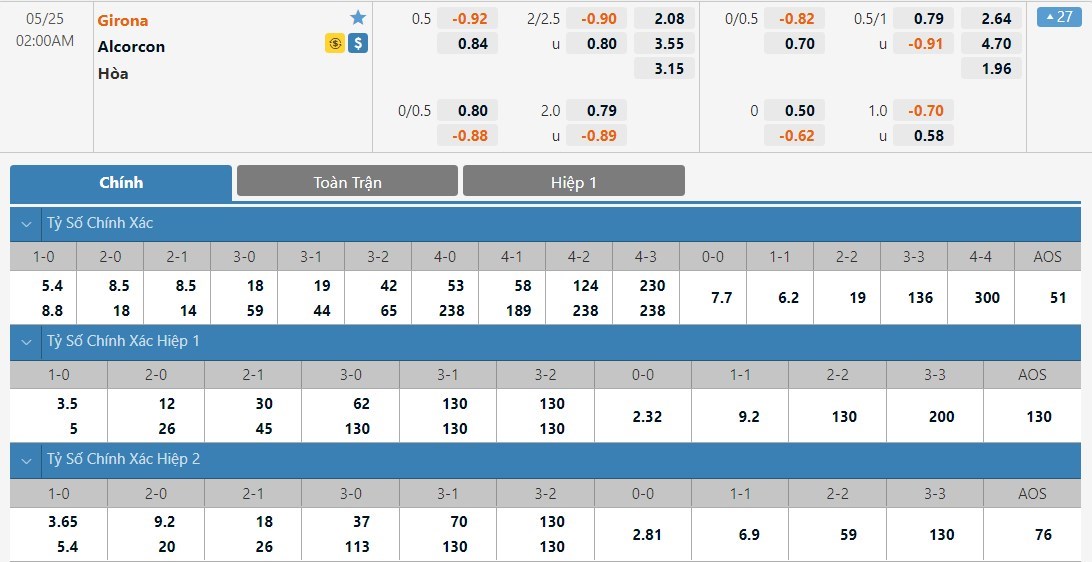 Soi kèo châu Á Girona vs Alcorcon