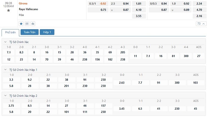 Dự đoán kèo tỷ số hiệp 1: Girona 1-1 Rayo Vallecano