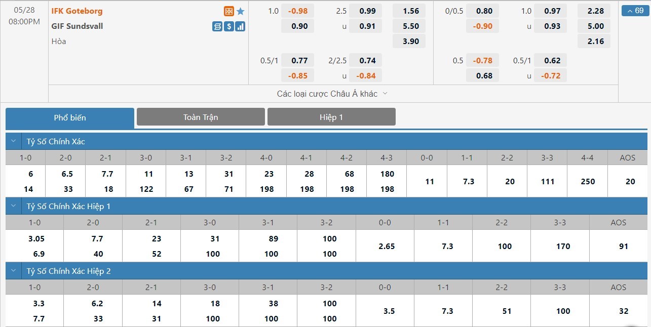 Soi kèo tài xỉu, kèo tỷ số Goteborg vs Sundsvall