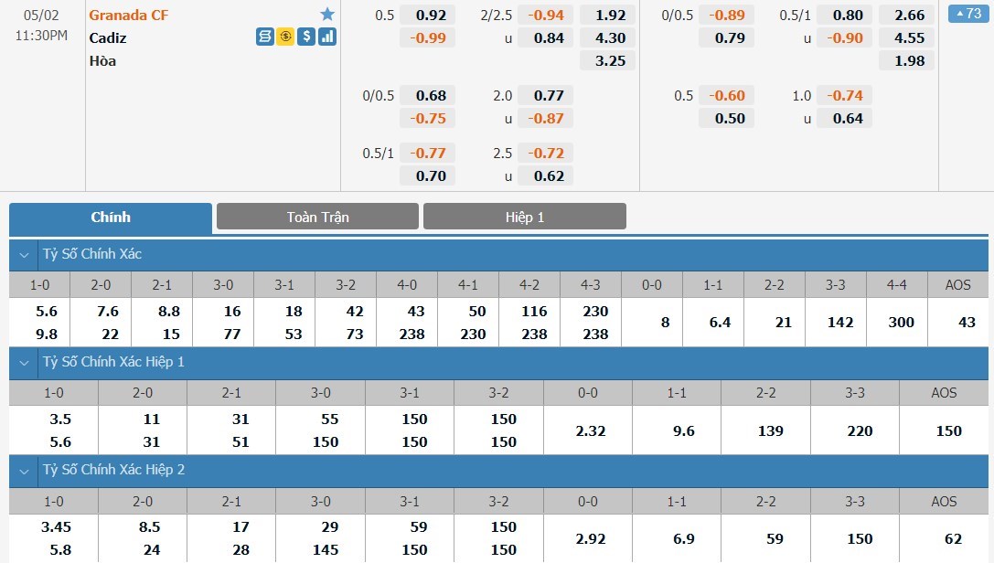 Soi kèo tài xỉu, kèo tỷ số Granada vs Cadiz