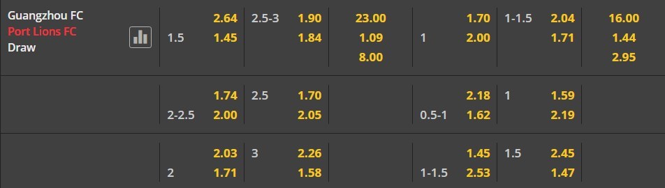 Dự đoán kèo tỷ số hiệp 1: Guangzhou FC 0-2 Port FC