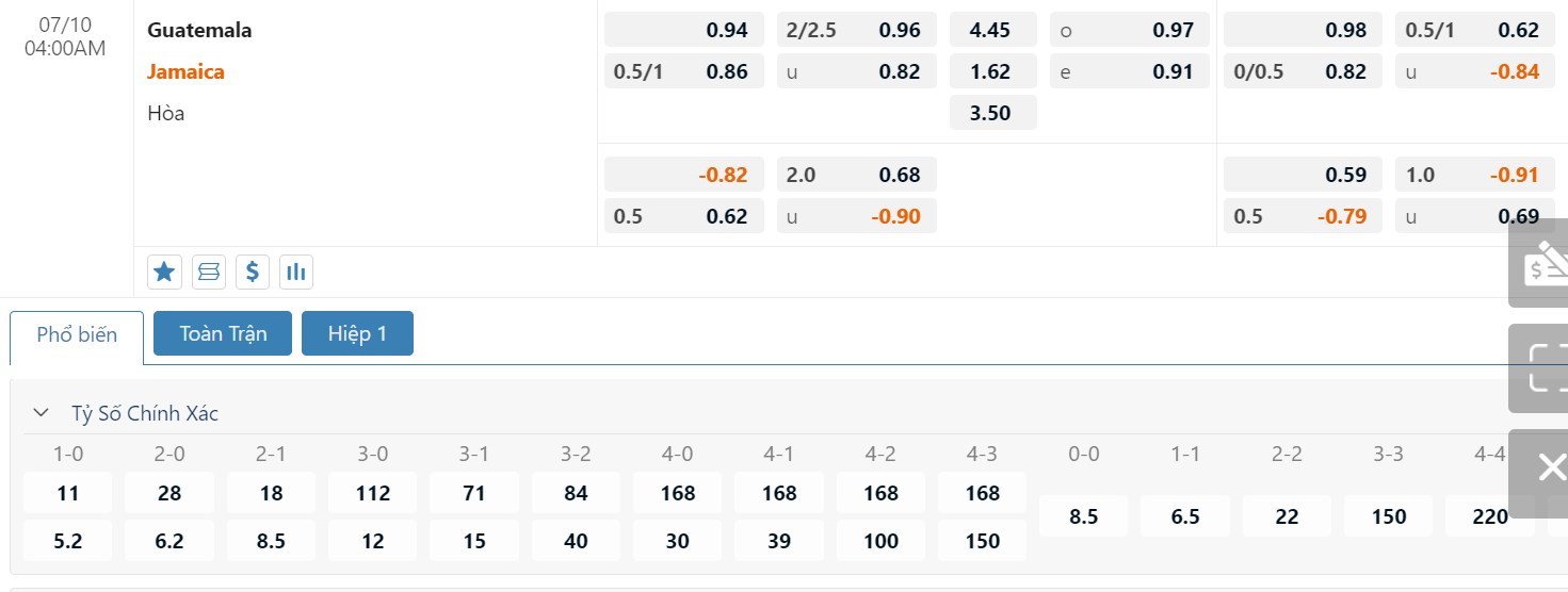 Dự đoán kèo tỷ số hiệp 1: Guatemala 1-1 Jamaica