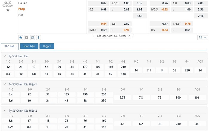Soi kèo tài xỉu, kèo tỷ số Hà Lan vs Pháp