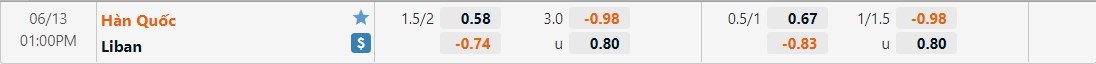 Soi kèo châu Á Hàn Quốc vs Liban