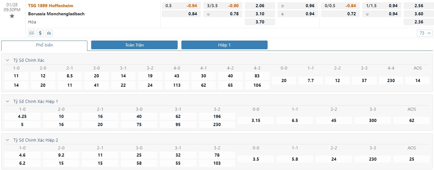 Soi kèo tổng quát Hoffenheim vs Borussia M.Gladbach