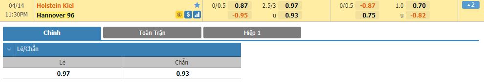 Dự đoán kèo tỷ số hiệp 1: Holstein Kiel 1-1 Hannover 96