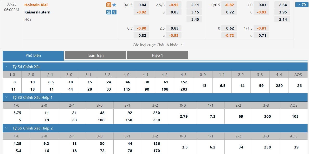 Ở vòng đấu đầu tiên của mùa giải năm nay, cả Holstein Kiel và Kaiserslautern đều đã ghi được 2 bàn thắng. Đây là lúc mà cả hai đội bóng này đều đang cho thấy lối chơi tấn công khá hiệu quả. Trận đấu này có thể sẽ có nhiều tình huống đáng chú ý và bàn thắng sẽ xuất hiện không ít. Ô cược tài sẽ là lựa chọn có thể tin tưởng ở kèo đấu này.