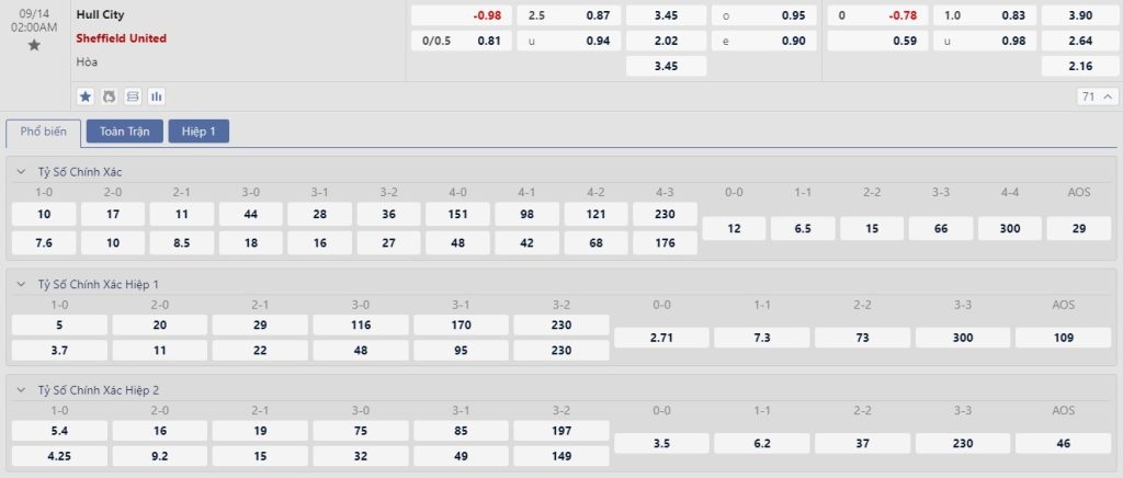Hull City đã ghi được 2 bàn thắng và thủng lưới 4 lần sau 4 lượt trận. Trong khi Sheffield United thể hiện khả năng ghi bàn tương đối tốt với 6 bàn thắng cho đến lúc này. Trong 3 lần đối đầu gần đây giữa hai đội, Sheffield United bất bại với 2 chiến thắng, 1 trận hòa. Đáng chú ý là họ giữ sạch lưới trong cả 3 trận kể trên. Cửa Xỉu sẽ là lựa chọn đầu tư hợp lý hơn cả dành cho giới mộ điệu trong trận đấu này.
