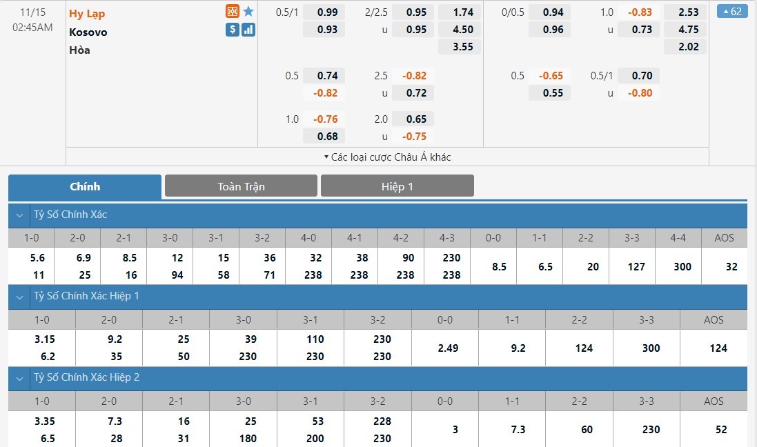 Kèo châu Âu hiệp 1: Hy Lạp