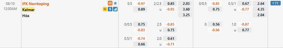 Dự đoán kèo tỷ số hiệp 1: IFK Norrkoping 1-0 Kalmar FF