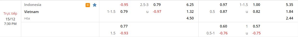 Dự đoán kèo tỷ số hiệp 1: Indonesia 0-2 Việt Nam