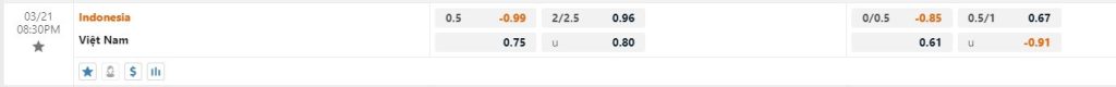 Kèo châu Á hiệp 1: Việt Nam (HT)