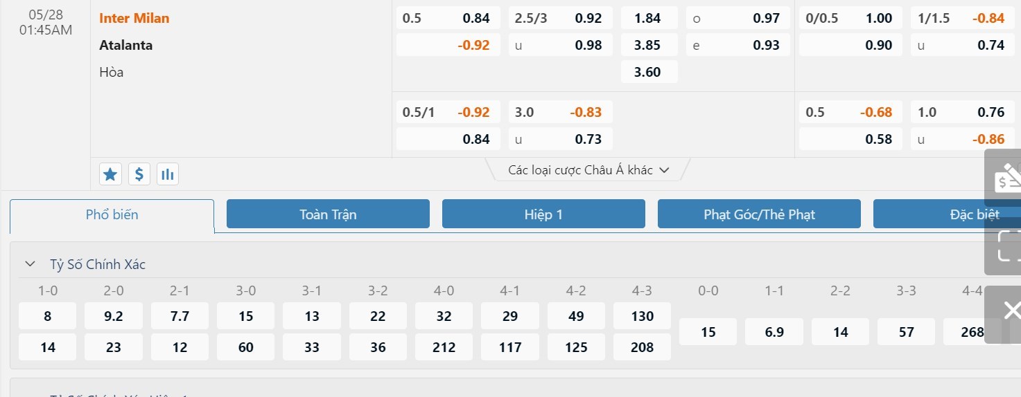 Soi kèo châu Á Inter Milan vs Atalanta
