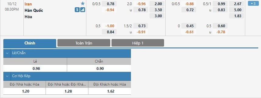 Soi kèo tổng quát Iran vs Hàn Quốc