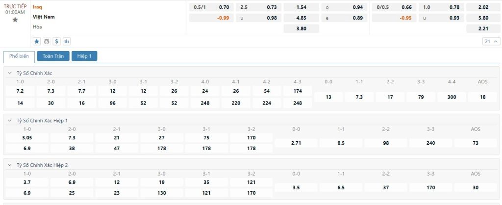 Soi kèo tài xỉu, kèo tỷ số Iraq vs Việt Nam