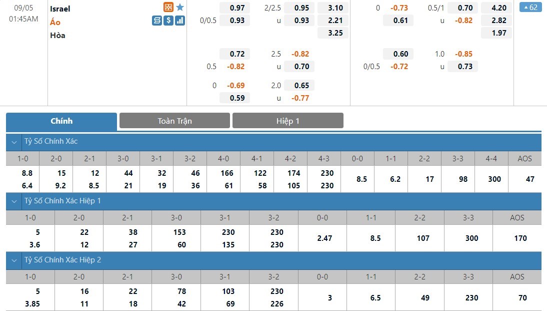 Soi kèo tài xỉu, kèo tỷ số Israel vs Áo