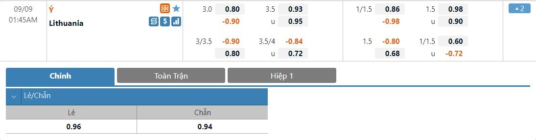 Tỷ lệ cược của Italia và Lithuania ở kèo đấu này sẽ có sự chênh lệch cực kì lớn khi mà Italia sẽ được đánh giá cao hơn Lithuania rất nhiều. Trình độ 2 đội đang có sự chênh lệch quá lớn và Italia sẽ rất khó để bỏ qua một chiến thắng trước đội bóng yếu nhất bảng này.