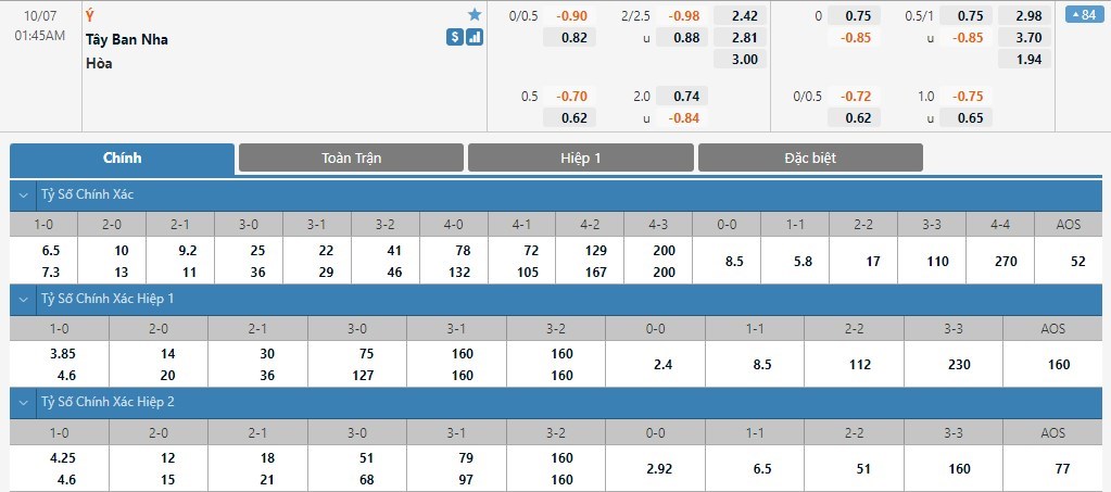 Soi kèo tài xỉu, kèo tỷ số Italia vs Tây Ban Nha