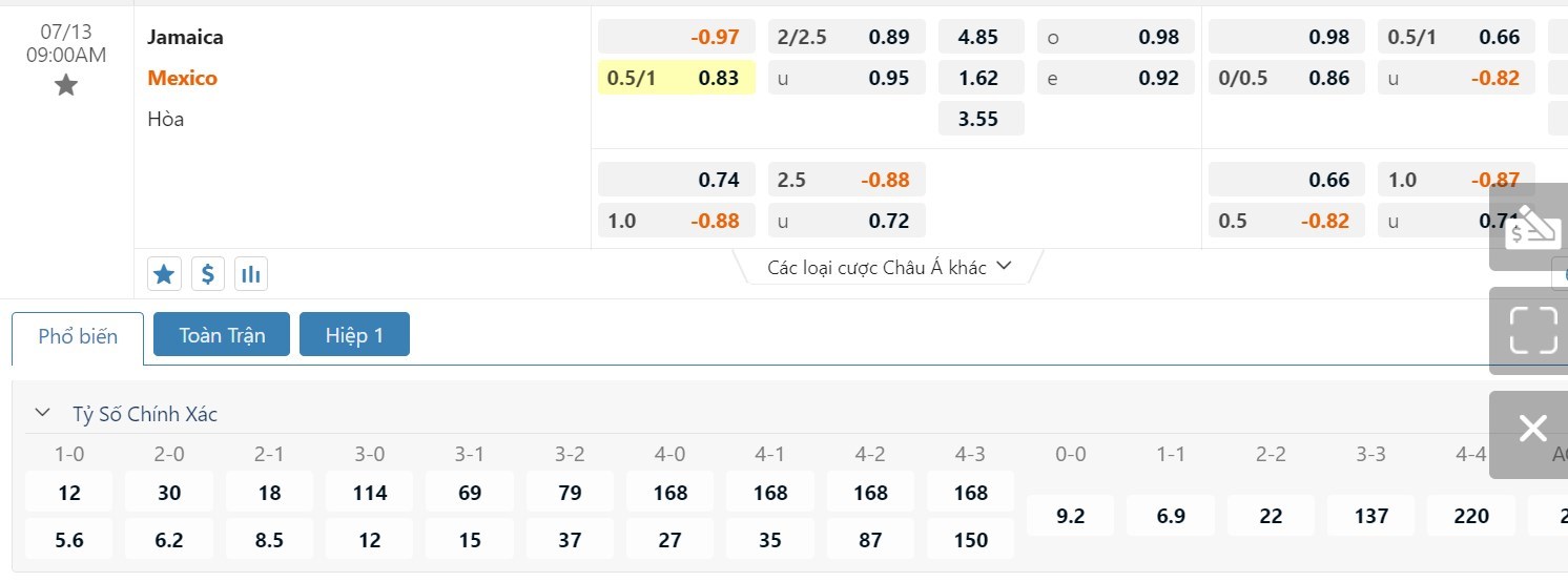 Dự đoán kèo tỷ số hiệp 1: Jamaica 1-1 Mexico