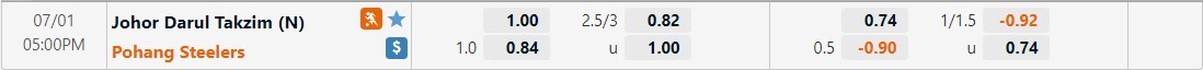 Dự đoán kèo tỷ số hiệp 1: Johor DT 0-0 Pohang Steelers