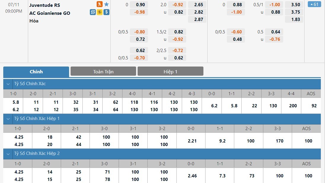 Juventude đang phải trải qua chuỗi 2 trận tịt ngòi liên tiếp và đây là lúc mà đội chủ nhà đang tỏ ra rất kém hiệu quả. Trước một Atletico GO đang trình diễn được một lối chơi phòng ngự cực kì ấn tượng, Juventude sẽ tiếp tục bế tắc. Cả hai đội đều đang thi đấu thiếu đột biến và ô cược xỉu sẽ là lựa chọn hợp lý cho kèo đấu này.