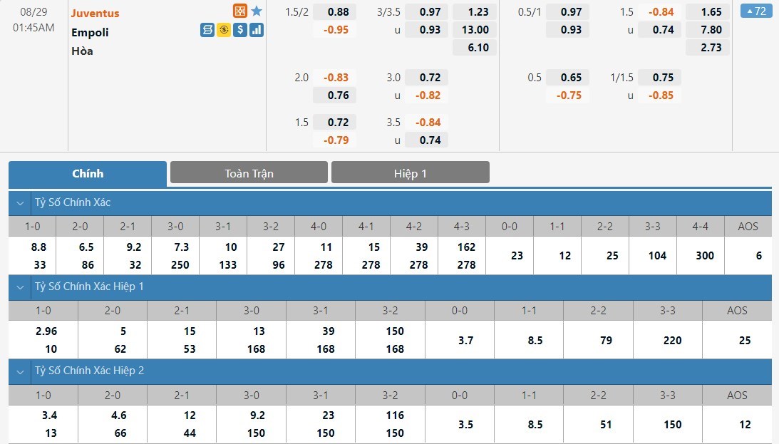 Soi kèo tổng quát Juventus vs Empoli