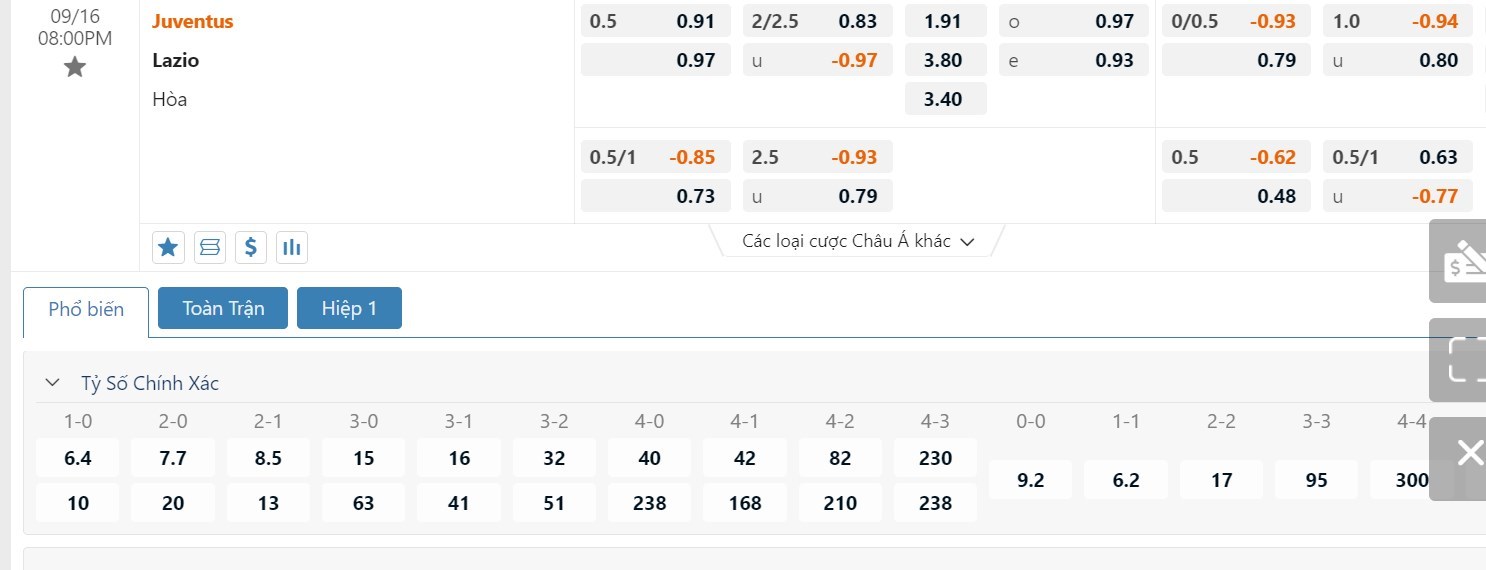 Soi kèo tài xỉu, kèo tỷ số Juventus vs Lazio